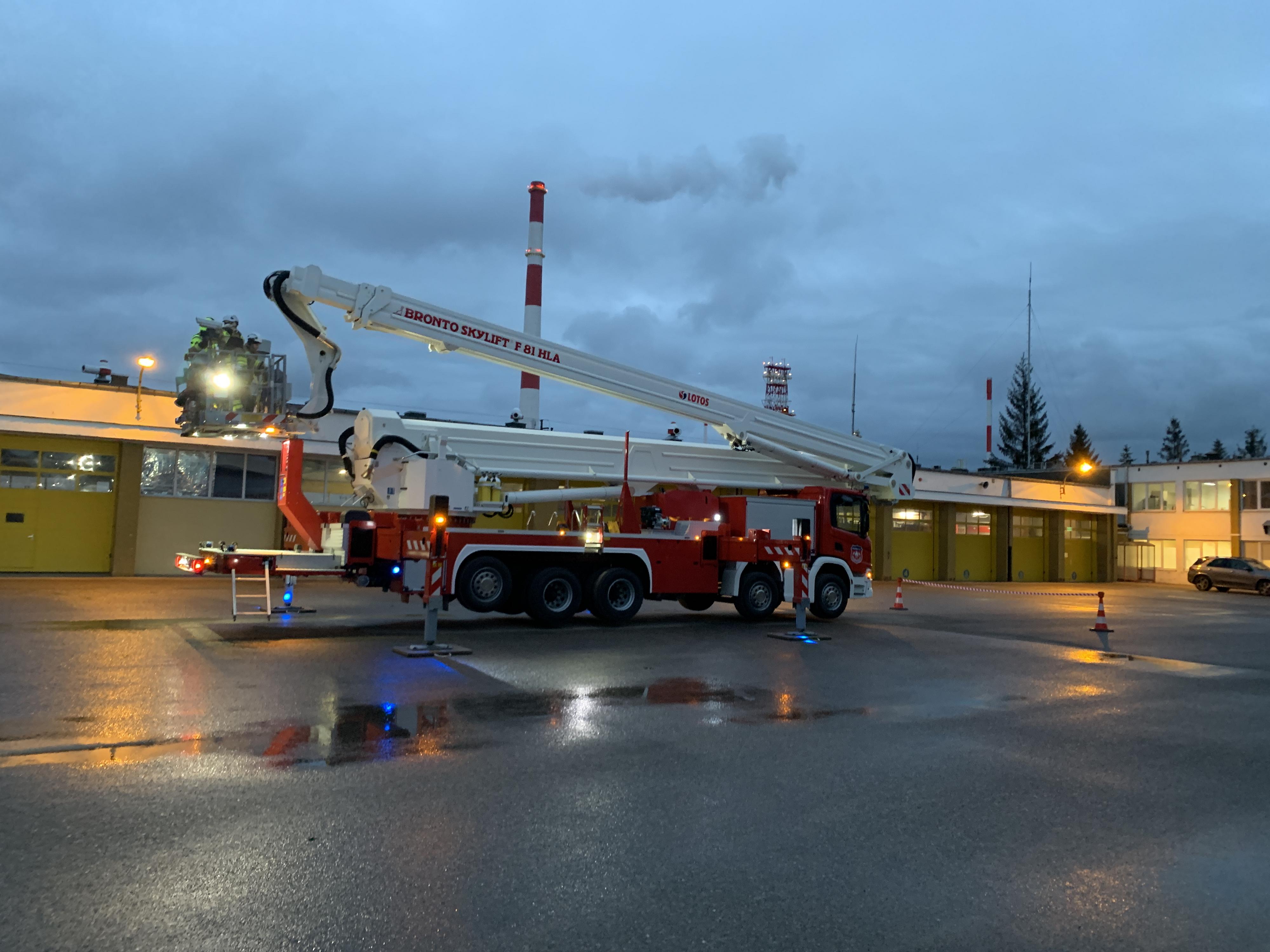 Lotos Straż, un servicio de bomberos de Grupa LOTOS en Gdańsk, Polonia, ha recibido una plataforma aérea F81HLA de 81 metros de Bronto, lo que les convierte en propietarios de una de las plataformas de extinción de incendios más altas de la Unión Europea. La Bronto F81HLA es la incorporación más reciente a la flota de LOTOS Straż y se utilizará para proteger las instalaciones de refinado más altas de la planta y proporcionar asistencia contra incendios en la zona de Tri-City en caso necesario. La entrega corrió a cargo de los agentes polacos de Bronto Skylift Finnservis- Bis/Leimro.