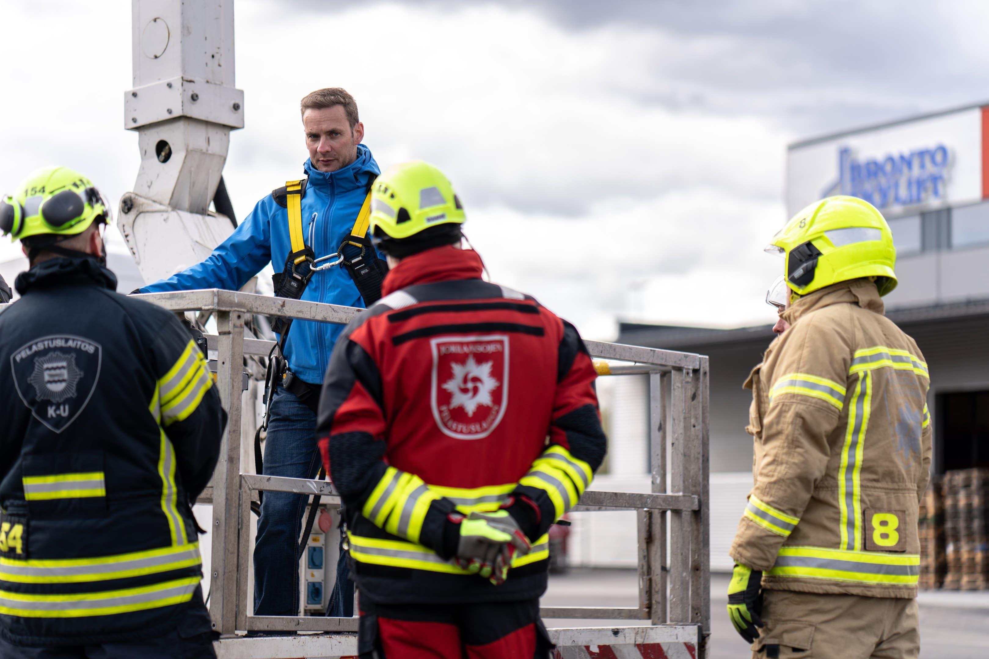 According to Mika Mäkelä, people working with hydraulic platforms need to have special skills and are a marginally small group even at rescue departments. It is not possible for everyone to do everything and at the same time maintain high-quality professionalism in every sector.